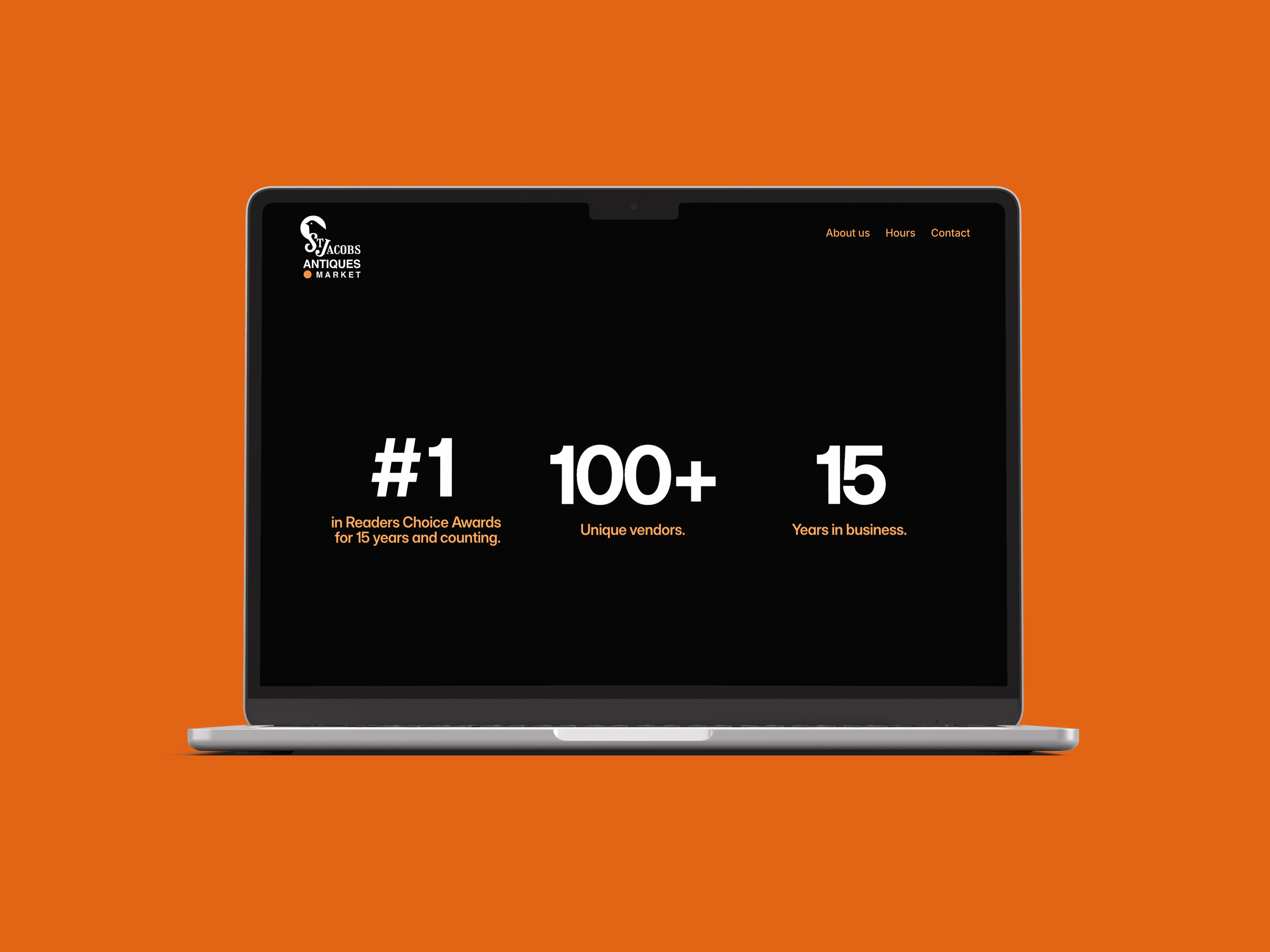 A dark, muted base palette evokes mystery and refinement, mirroring the experience of stepping into a market full of rare finds. Accents of orange provide warmth, energy, and a subtle sense of surprise, adding vitality to the otherwise minimal aesthetic. Typography is a clean, modern sans serif that ensures clarity and legibility across all media. The website is dynamic, using motion and interaction to create a sense of exploration and discovery while keeping content readable and impactful. Every element of the design balances modernity with the market’s historic charm, creating a cohesive and engaging brand experience.