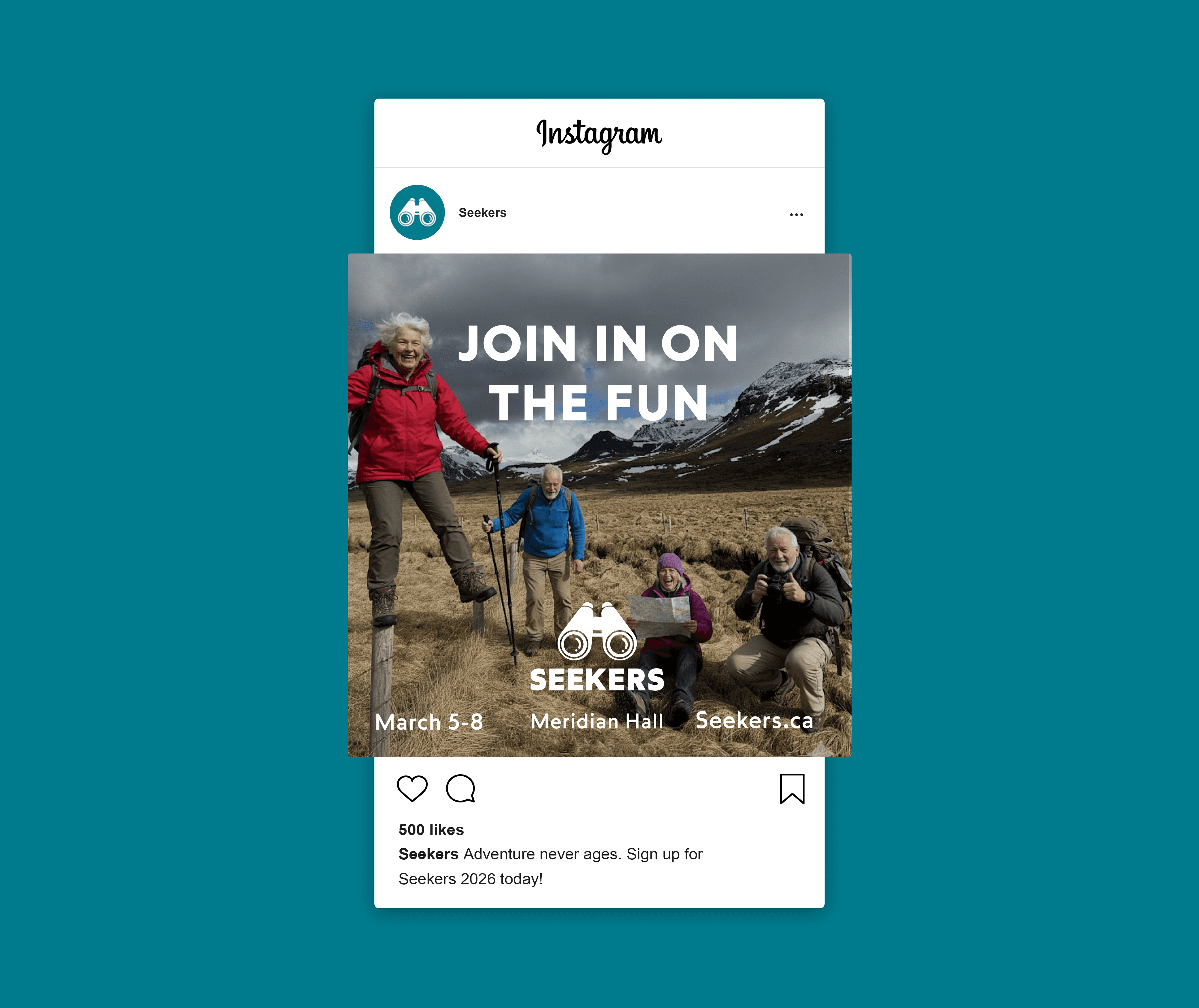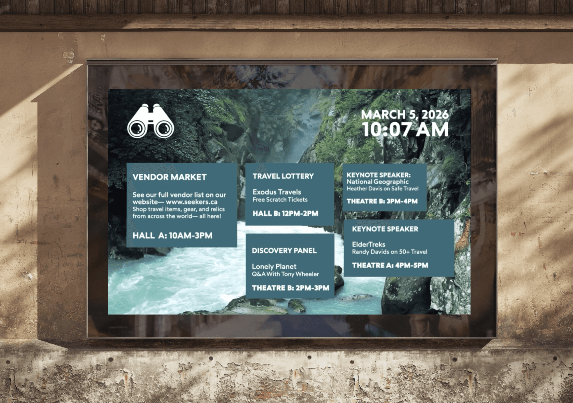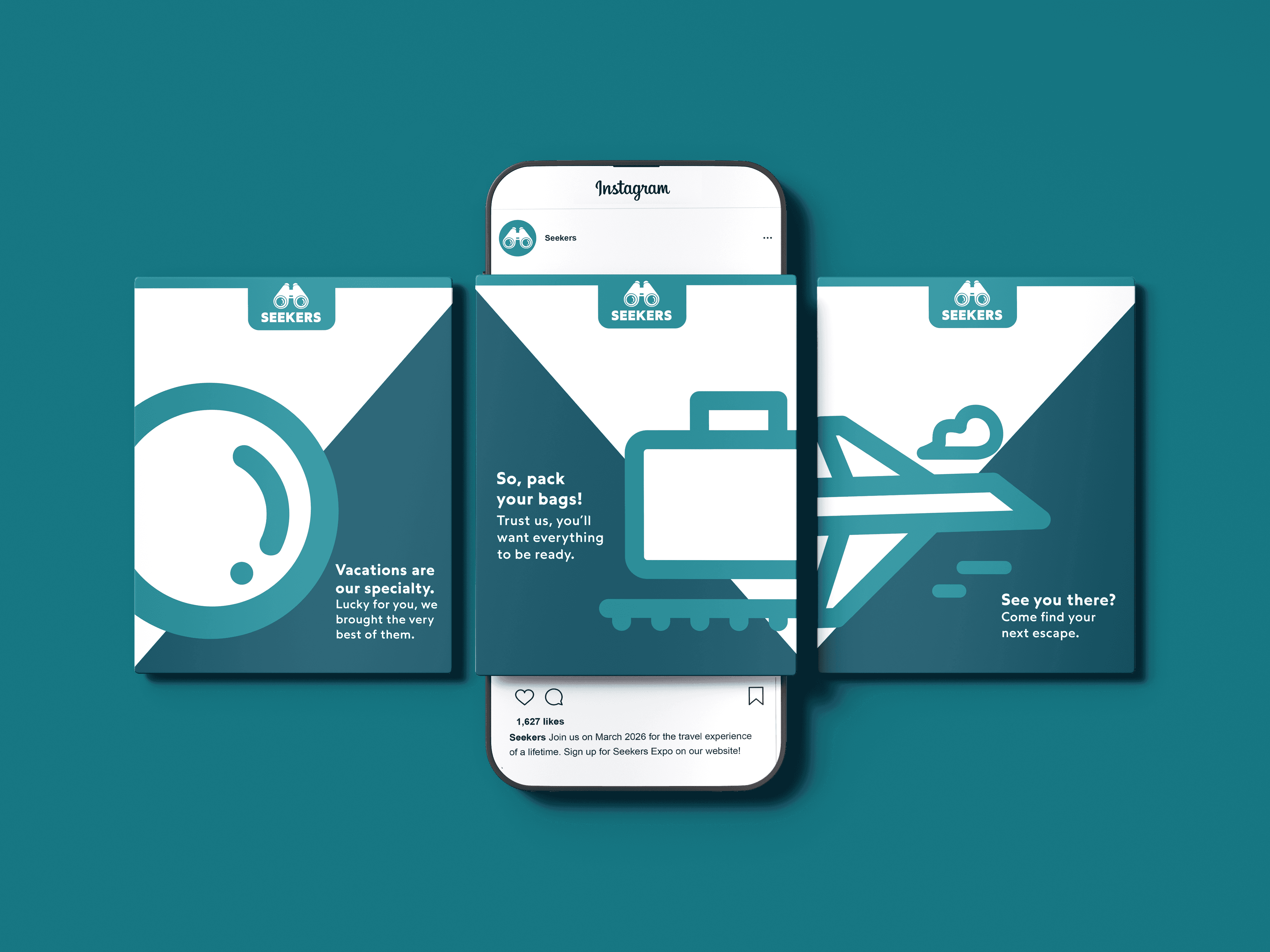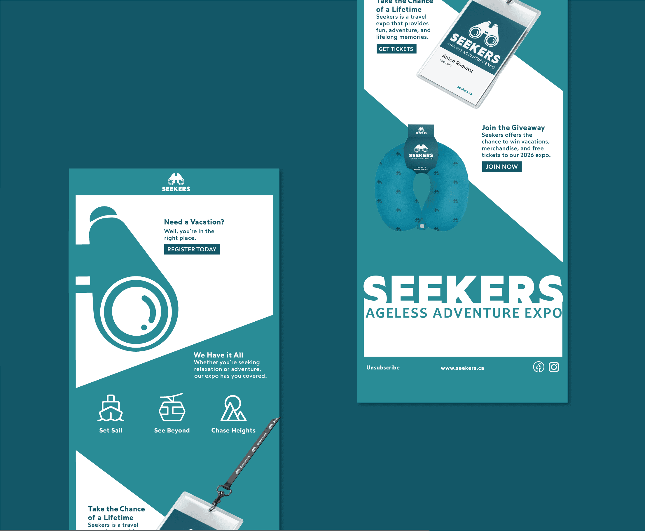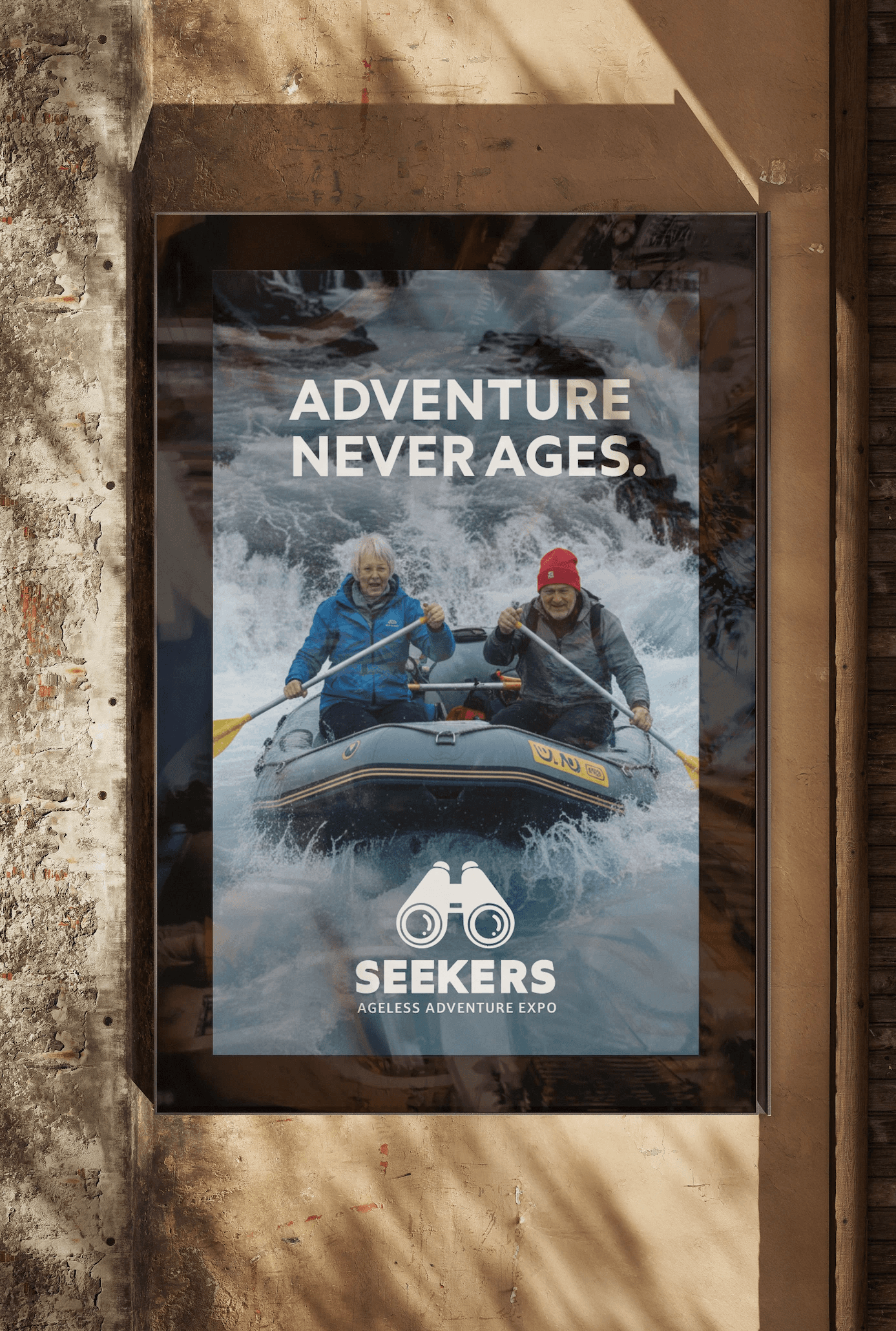 Seekers is a travel expo designed for adults 55+ who are adventurous and eager to explore. The event brings together travel partners, inspiring speakers, and unique vendors to spark curiosity and make planning new adventures easy and enjoyable. With a clean, modern identity utilizing a modern logo, bold type, iconography, and a fresh palette, Seekers celebrates meaningful travel, connection, and the joy of discovering the world at any age. Venue signage: https://youtu.be/sUTY_d8Zzw8?si=ynj83bCPGdxKKSOX Schedule: https://youtu.be/1YmV4t6CbnU Logo: https://youtube.com/shorts/kvciTAA6UiI