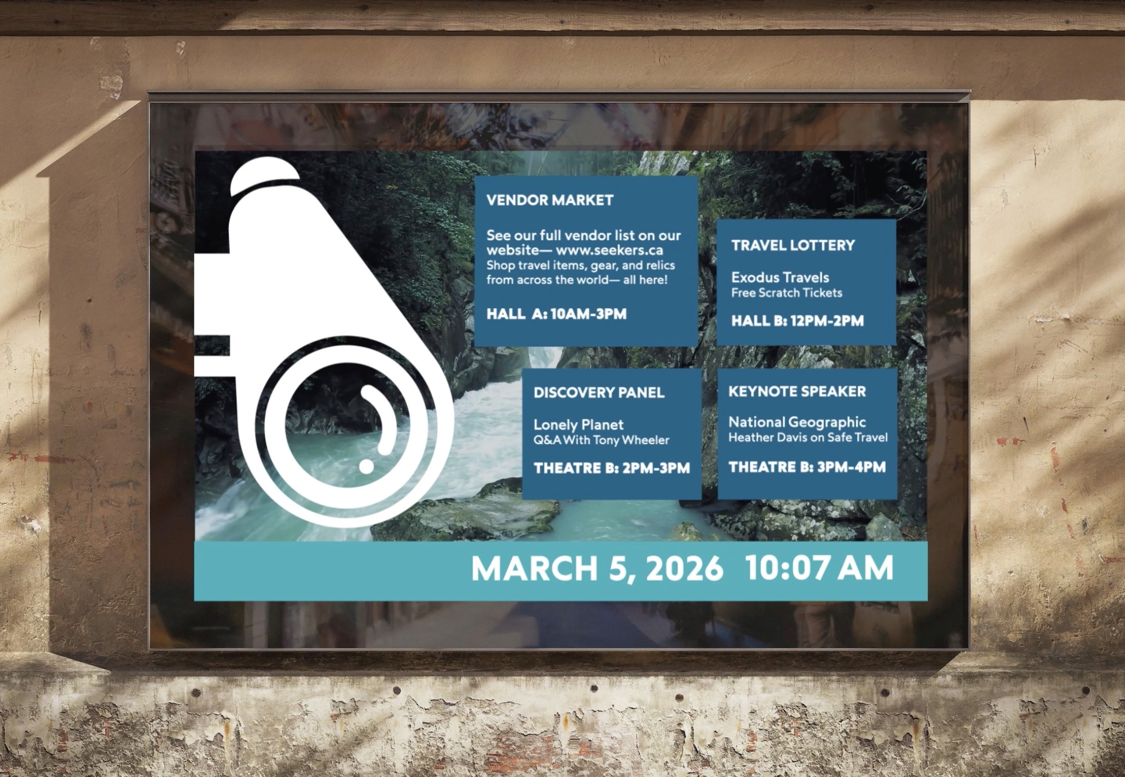 Seekers is a travel expo designed for adults 55+ who are adventurous and eager to explore. The event brings together travel partners, inspiring speakers, and unique vendors to spark curiosity and make planning new adventures easy and enjoyable. With a clean, modern identity utilizing a modern logo, bold type, iconography, and a fresh palette, Seekers celebrates meaningful travel, connection, and the joy of discovering the world at any age. Venue signage: https://www.youtube.com/watch?v=N5OMxVlhSes Schedule: hhttps://youtu.be/Wb98rZK0V7E?si=huLjWJ03zOoERuEo Logo: https://youtube.com/shorts/kvciTAA6UiI Website: https://static-methodologies-326185.framer.app/