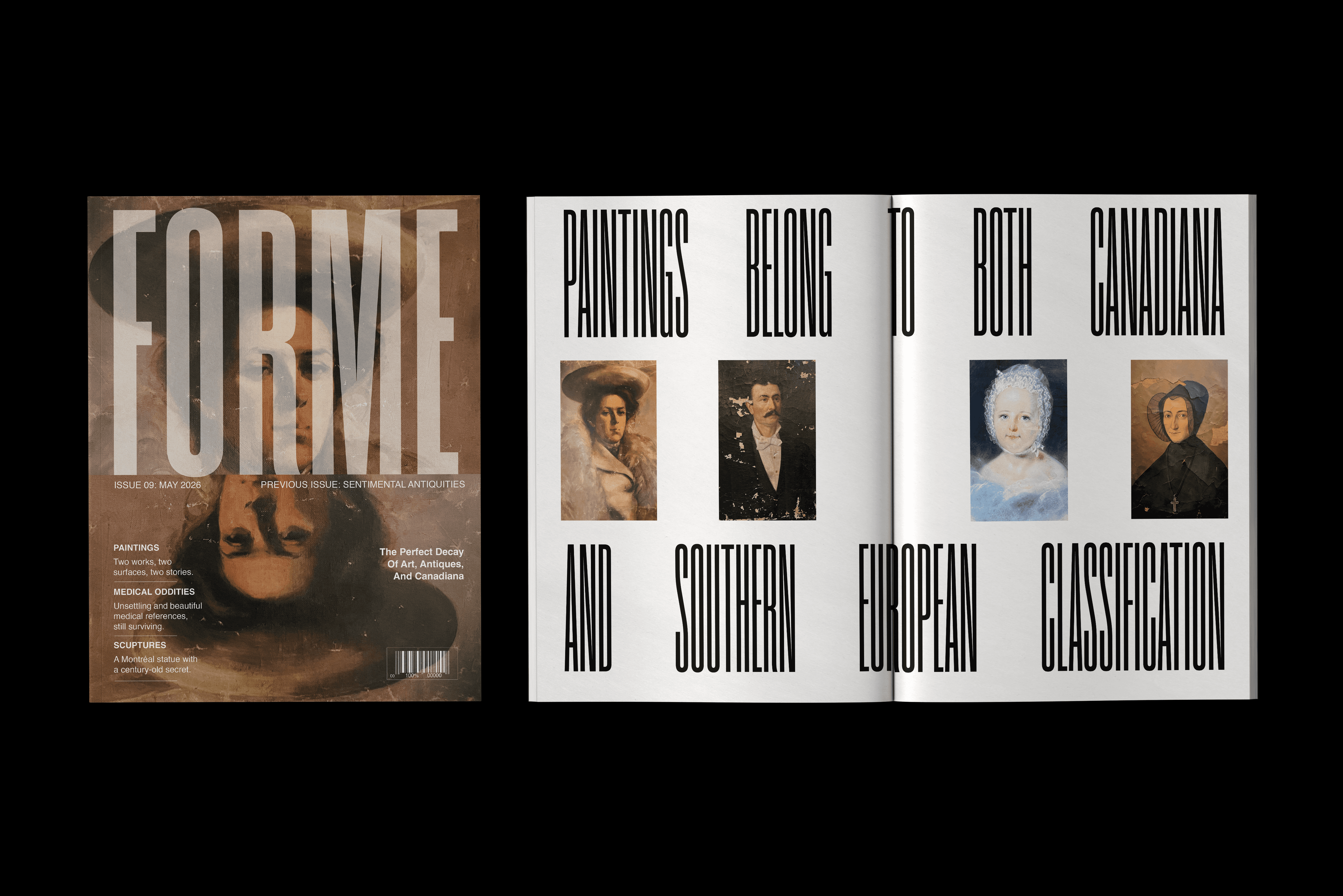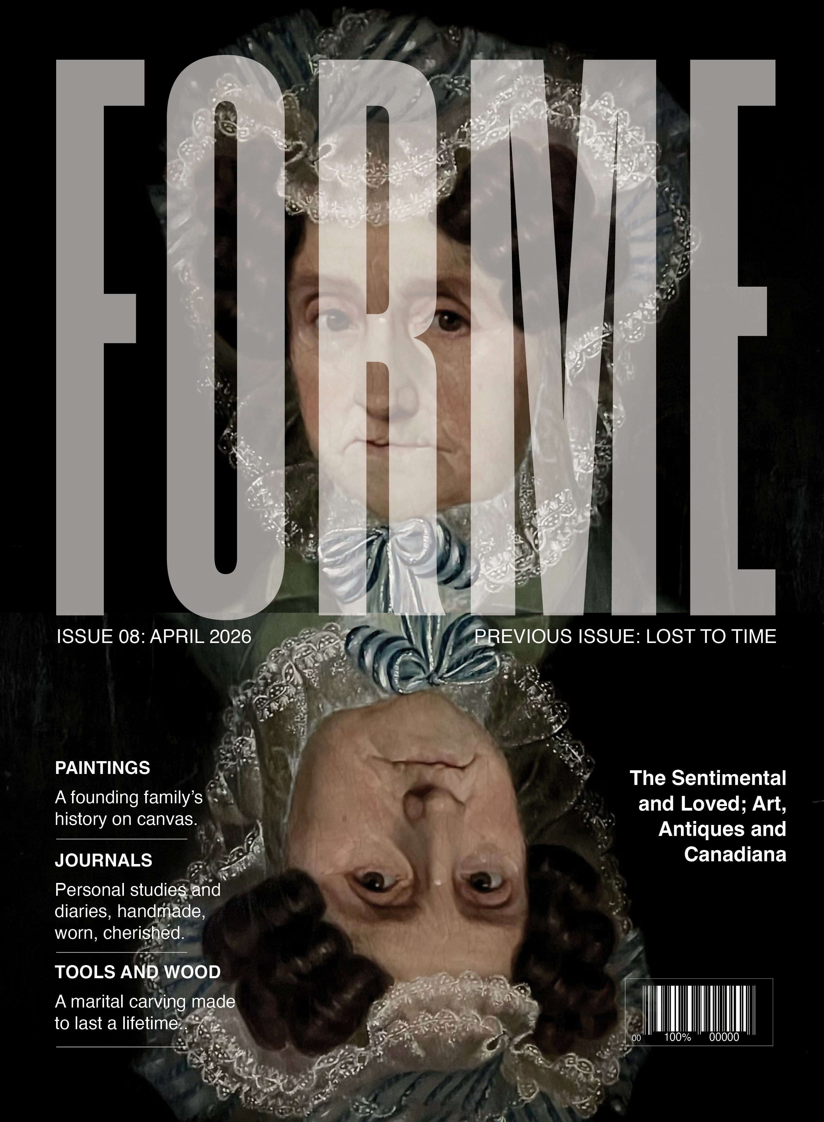 FORME Magazine celebrates art, antiques, and Canadiana through storytelling that reveals the history and beauty behind each object. Each issue explores a different theme, from decaying artifacts to sentimental treasures, creating an experience that is both educational and visually engaging. The magazine invites readers to discover the stories behind these pieces while enjoying a dynamic and thoughtfully curated visual journey.
