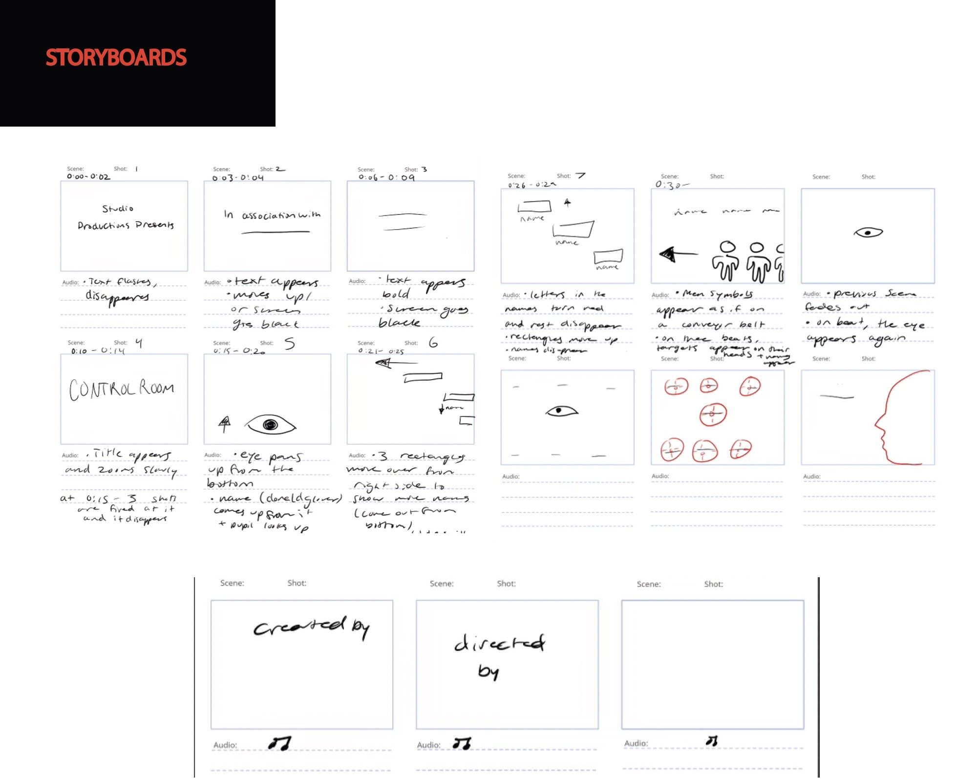 The sequence uses simple illustrations, icons, and typography to make the fast pace of the story digestible while maintaining a sense of unease. A restricted palette of off-white, black, and red reinforces tension and urgency. Symbolic elements like cameras, eyes, birds, and signals hint at surveillance and disappearance, creating a visual language that supports the narrative while keeping the viewer engaged. The design balances clarity with suspense, making complex themes approachable without losing the show’s eerie, offbeat tone.